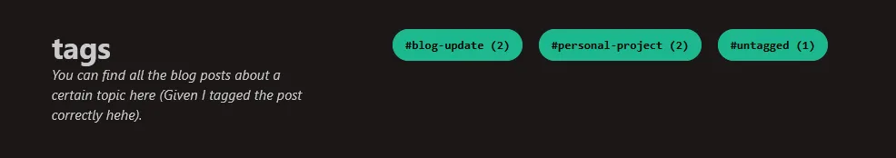 Funny thing, when I was finding resources about adding blog tag to astro, turn out the official getting started tutorial already covered the matter. Either I didn’t read the thing entirely or I just forget about it ehe.